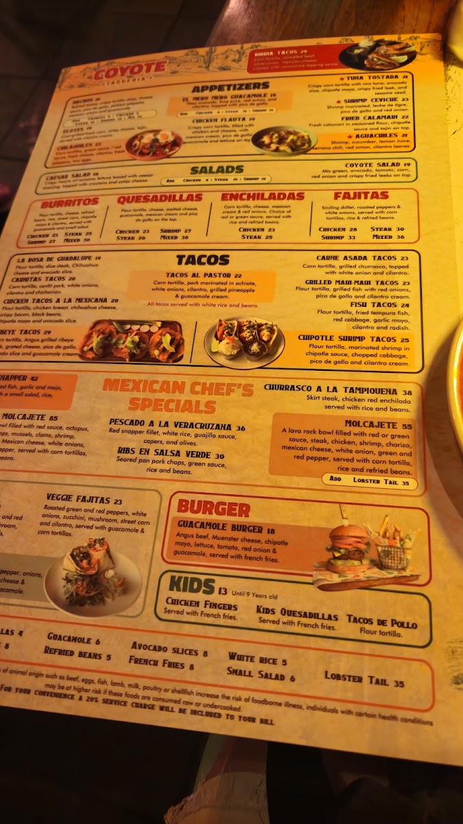 Welcome to Coyote Taqueria, a vibrant dining destination located at 1351 Collins Ave, Miami Beach. This taqueria offers a tantalizing menu that showcases the essence of traditional Mexican flavors with a contemporary twist. Their birria tacos and mahi tacos receive rave reviews for their freshness and crispness, making them must-tries. Don't overlook the guacamole, recommended by satisfied patrons as an essential addition to any meal.